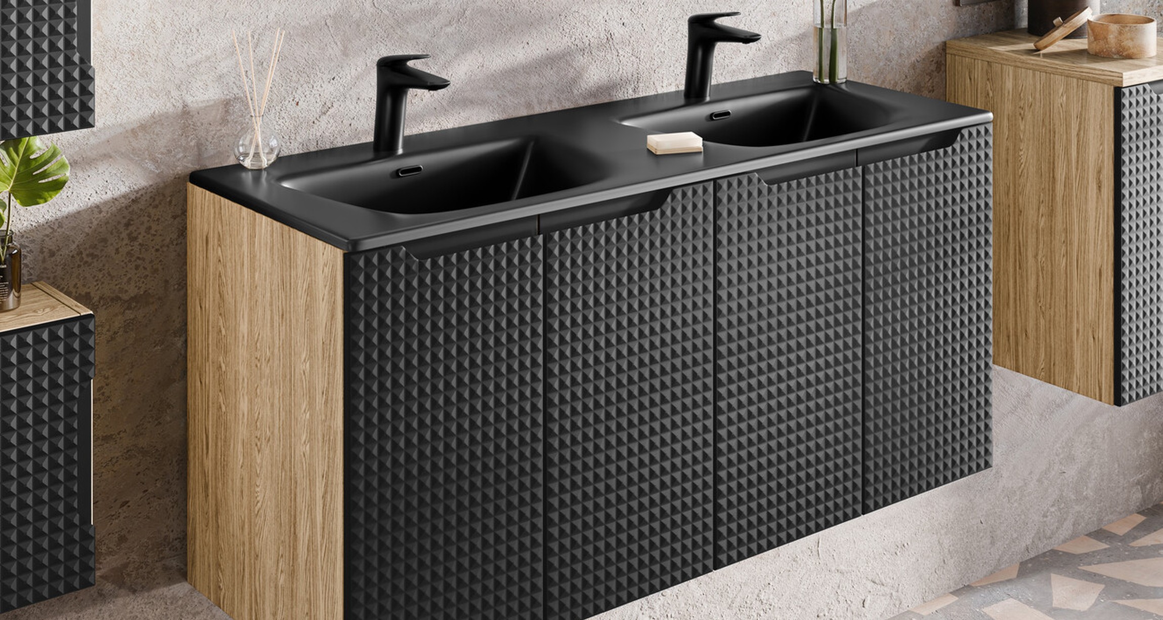 Dupla mosdós kialakításnál külön figyelmet igényel a csaptelepek és a lefolyók elhelyezése, mert a szifon(oka)t két oldalon vagy középen kell megoldani. A jó hír: megfelelő kialakítással a tárolókapacitás továbbra is nagyon erős lehet, csak előre kell tervezni.