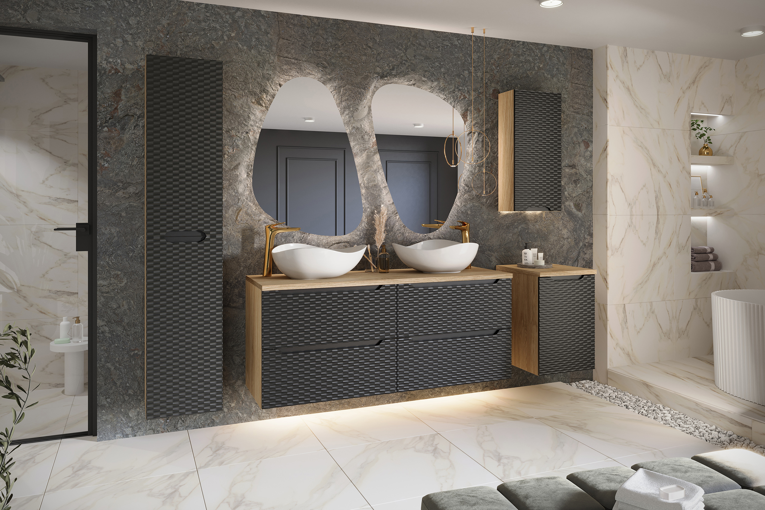 fürdőszobabútor. Az OCEAN BLACK kollekció ezt a kettőt egyesíti: