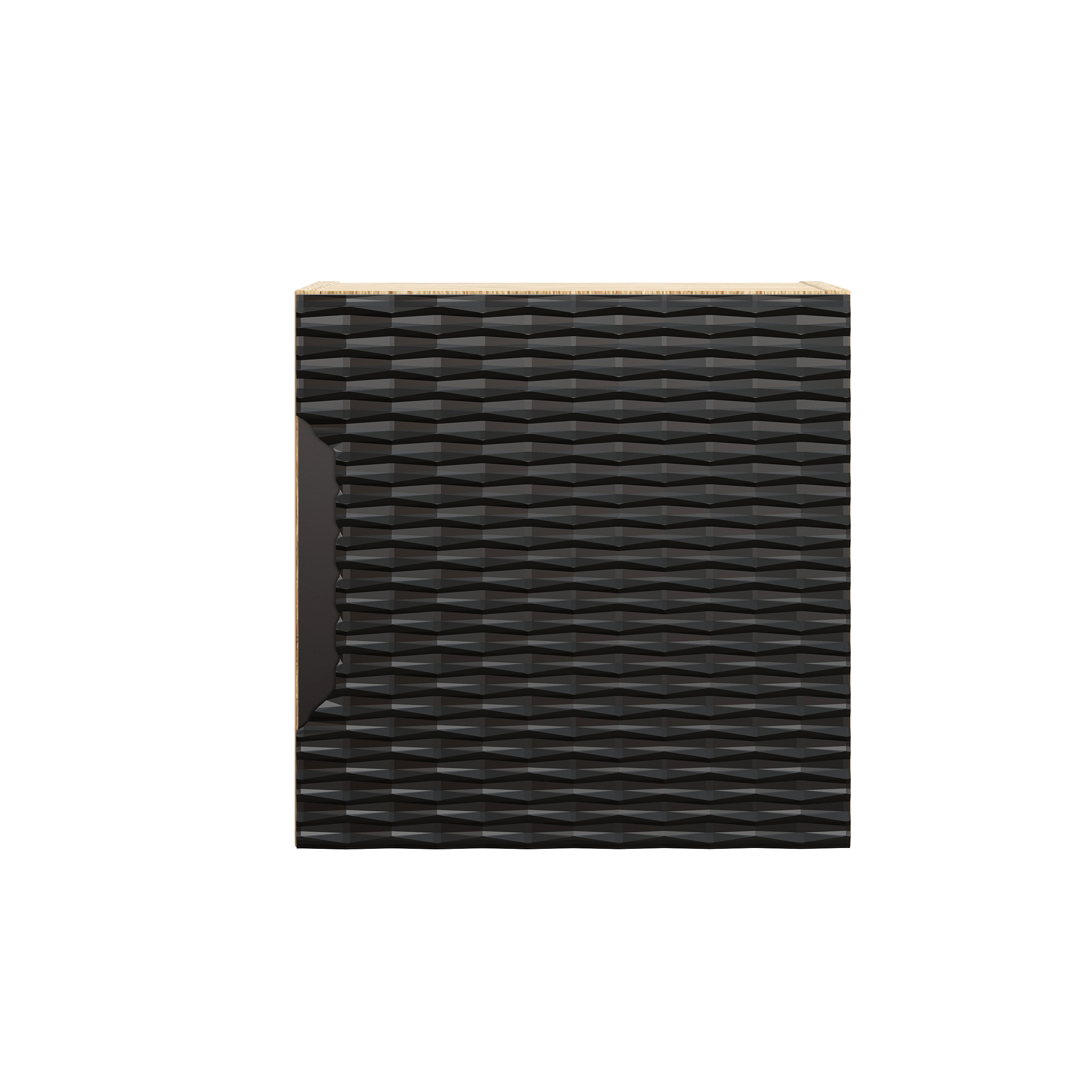 OCEAN BLACK mosdószekrény két nyitott fiókkal, természetes fa belsővel és fekete 3D fronttal, amely bőséges tárolóhelyet biztosít a mindennapi fürdőszobai kellékeknek.