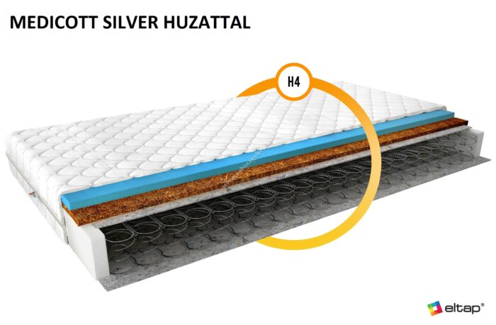 • H4 matrac keménység – a „súlyosabb egyéniségekhez” illő kemény matracok, 100 és 130 kg közötti testtömeggel rendelkezőknek biztosít stabil test támaszt.