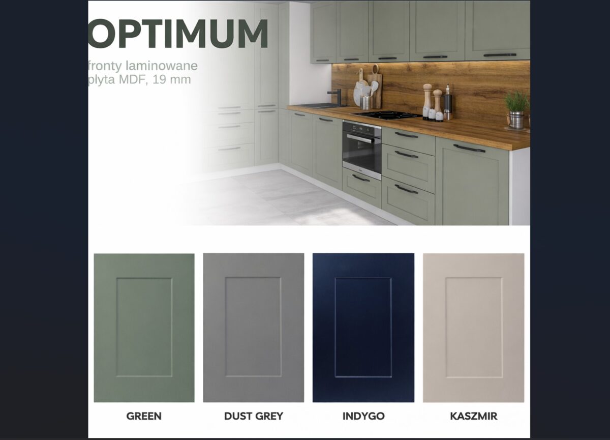 Az OPTIMUM program egyedi, matt textúrájú és modern, trendi színekkel rendelkező frontokat kínál. Az Optimum program azoknak az ügyfeleknek szól, akik értékelik az időtlenséget konyhájukban.