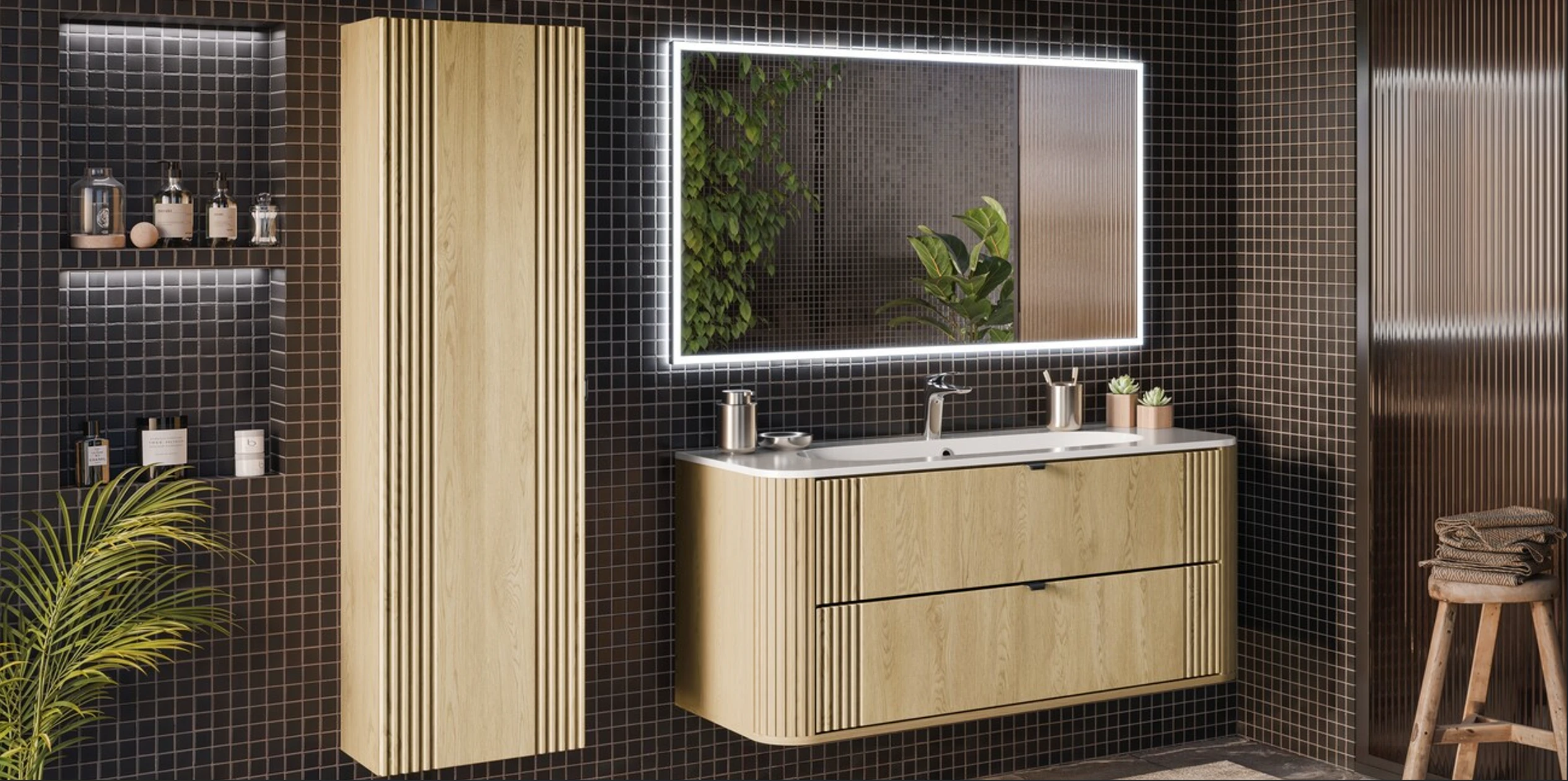 A kollekció különlegessége a vertikálisan mart frontkialakítás, amely egyedi textúrát ad a bútoroknak, miközben finoman követi a jelenlegi lakberendezési trendeket. Ez a stílus egyszerre idézi a természetes anyagok melegségét és a modern minimalizmus letisztultságát, így ideális választás azok számára, akik egy időtálló, mégis karakteres fürdőszobabútor megoldást keresnek.