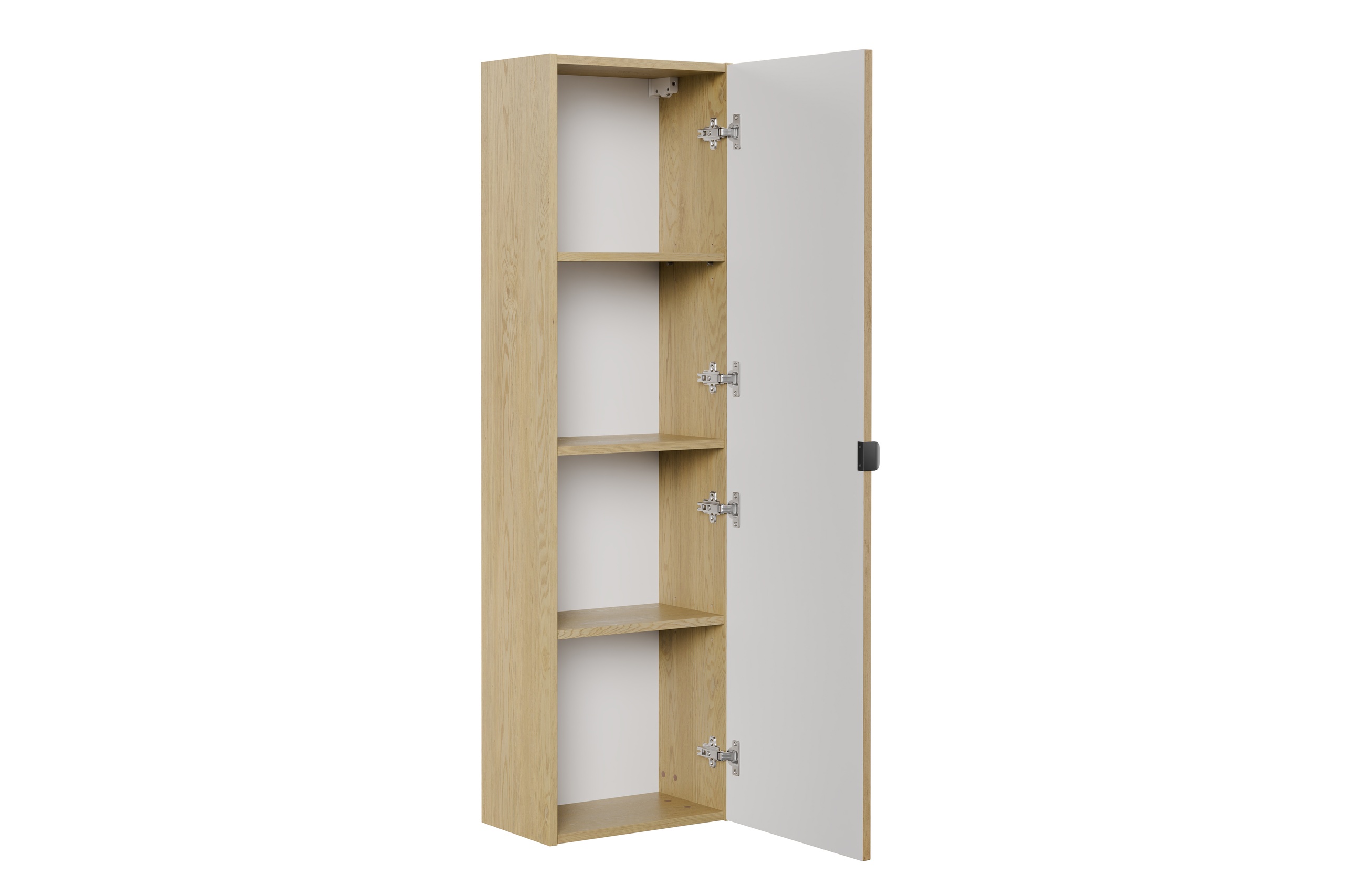 Az OVALIA CREMONA 40 cm-es magas szekrény letisztult, természetes hatású megjelenéssel és karakteres függőleges bordázattal egészíti ki a kollekciót. A Cremona tölgy dekor, a fekete fogantyú és a karcsú forma modern, mégis meleg összhatást ad a fürdőszobának. Négy polcos belső kialakítása praktikus tárolást biztosít a mindennapi fürdőszobai kellékekhez.