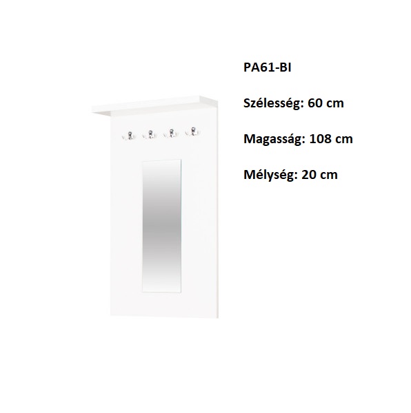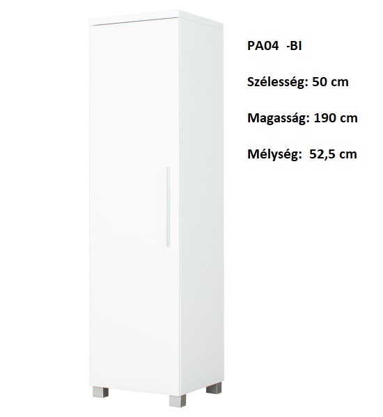 Az összeállítás elemei:PA04-BI 1ajtós akasztós szekrény (1polc) bútor. 50/190/52,5 (szél./mag./mélys.)