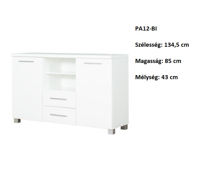 PA12-BI 2ajtós,2fiókos(1polc) komód 134,5/85/43 (szél./mag./mélys.)