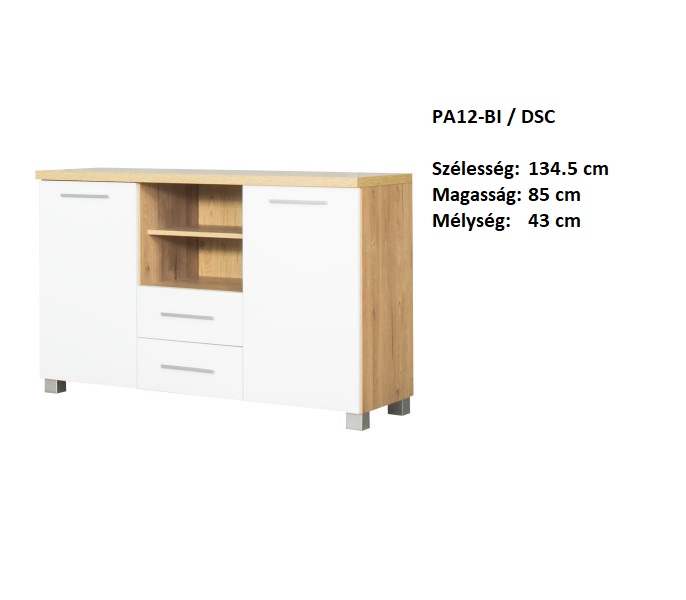 PA12-DSC/BI 2ajtós komód (2 fiók, 1 polc) 134,5/84.5/48(szél./mag./mélys.)