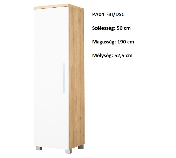 Az összeállítás elemei:PA04-DSC/BI 1ajtós akasztós szekrény bútor. 50/190/52,5 (szél./mag./mélys.)