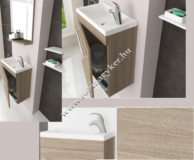 Fürdőszobabútor 42 cm. polcos tükörrel és kerámia mosdóval.