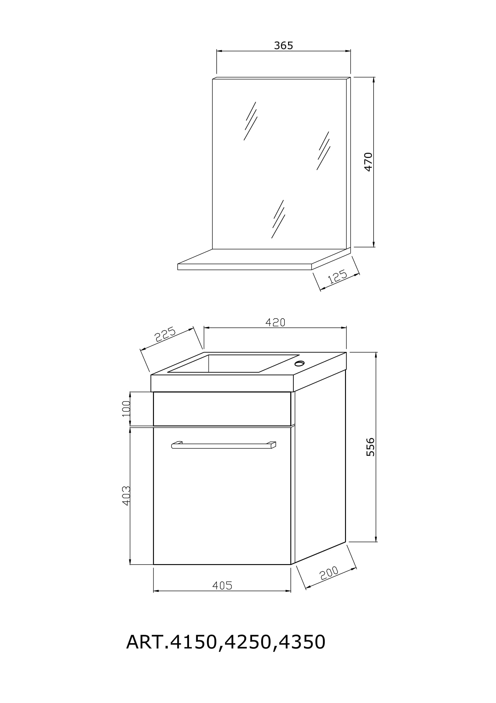 Fürdőszobabútor 42 cm. polcos tükörrel és kerámia mosdóval.