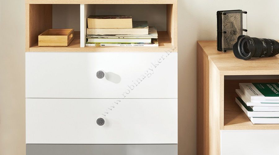 Ha egy tinédzser szobájába keres bútort, minden bizonnyal a PIXEL bútorkollekcióra fog figyelni. Az egész kollekciót egyszerű, geometrikus szilárd testek jellemzik, amelyeket érdekes formatervezés ihlette. A három szín, a szürke, a fehér és a keksz tölgy kombinációja minden bútor elrendezéshez passzol. A bútorok minőségi laminált faforgács bútorlapból készülnek, amely ellenáll a mechanikai sérüléseknek.