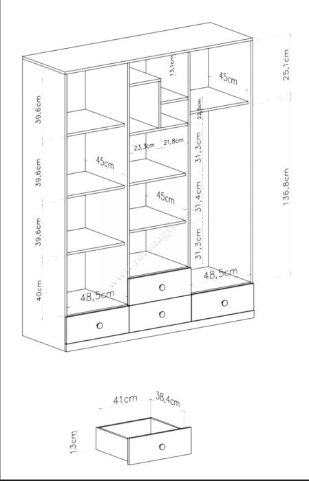Az elem méretei : PX1 gardrób szekrény 150/190/50cm (szél./mag./mélys)