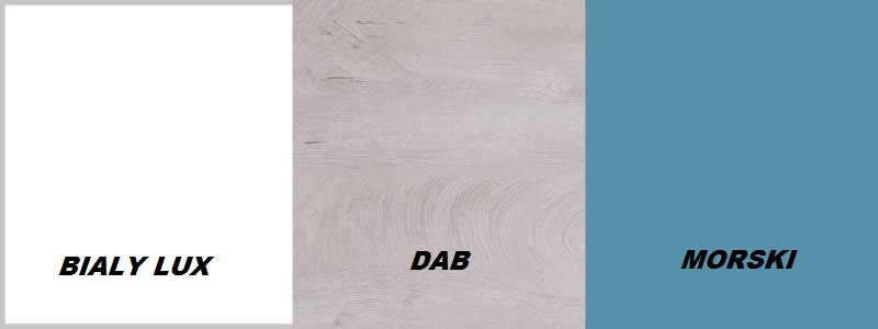 A képen látható szín : –BIALY LUX(FEHÉR) matt / DAB(TÖLGY) matt /MORSKI(KÉK) matt