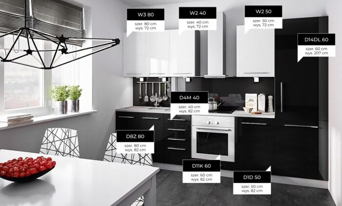 PLATINUM KONYHA MAGASFÉNYŰ "BLACK-WHITE HG" 5 MÉTERES-GREY KORPUSZ_konyhabútor