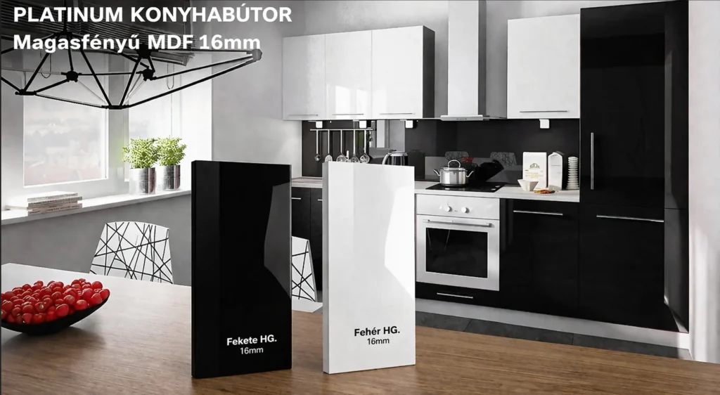 Sokan azért választanak elemes konyhabútor rendszert, mert szeretnének előre kalkulálhatóbb költségekkel, gyorsabban szerelhető és bővíthető megoldással dolgozni. A PLATINIUM ebben a kategóriában azért érdekes, mert nem kelt tipikus „szettbútor” hatást. A fényes MDF frontok, a markáns kontrasztok és a többféle elrendezési lehetőség miatt a végeredmény könnyen lehet olyan látványos, mintha jóval magasabb árkategóriájú konyháról lenne szó. Ez főleg akkor előny, ha valaki felújítás előtt áll, új házba költözik, vagy befektetési célra szeretne vonzó, mégis költséghatékony konyhát kialakítani. A gyártói modulrendszer és az elérhető mérettartományok azt mutatják, hogy kis és nagy konyhákhoz egyaránt jól használható.
