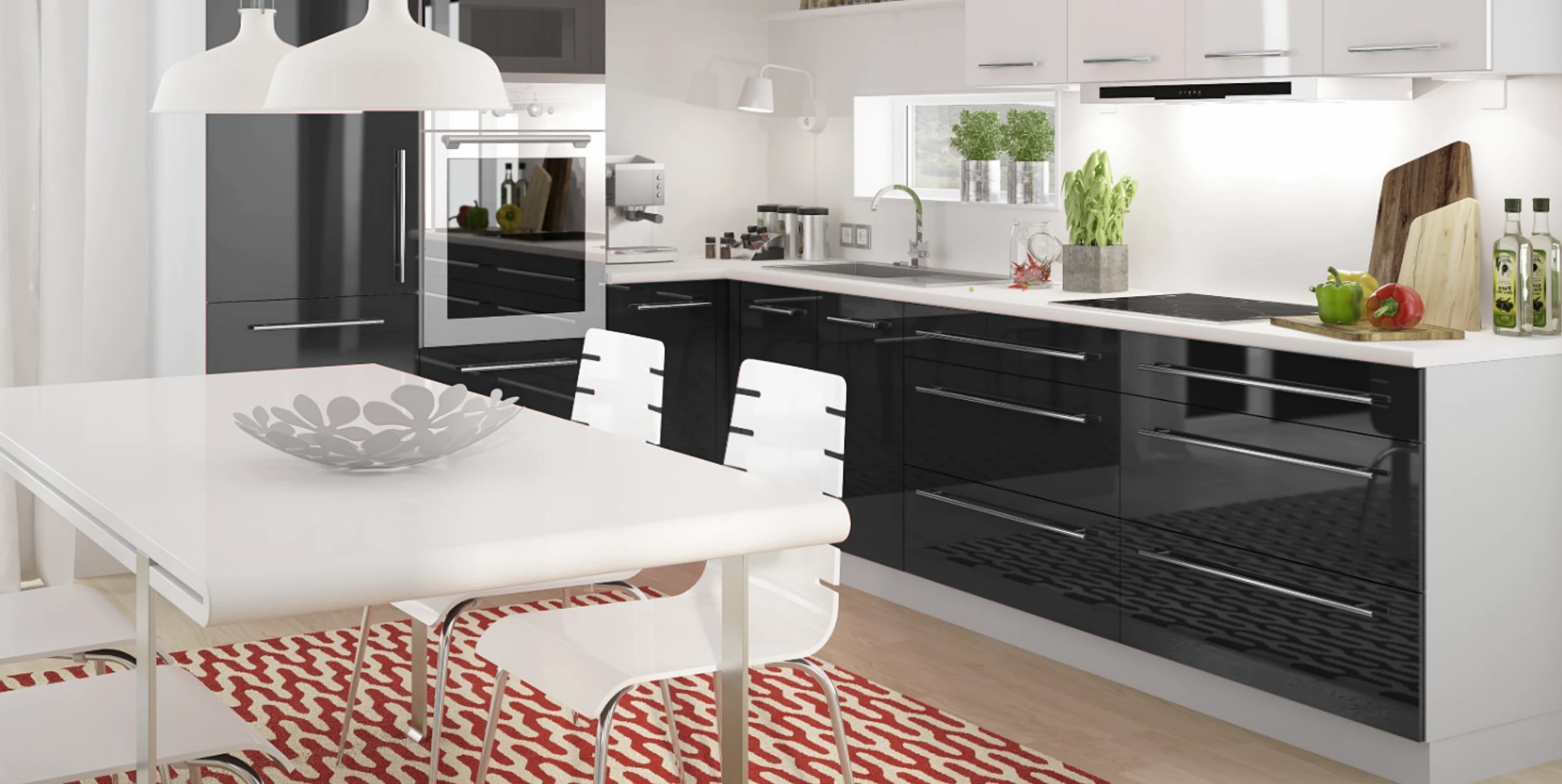 A PLATINIUM család különösen jó választás lehet olyan enteriőrökbe, ahol fontos a fény játéka. A magasfényű frontok visszatükrözik az ablakokból, lámpákból és környező felületekből érkező fényt, ezért a konyha élőbbnek és drágábbnak hat. Fehér fronttal ez világosabb, tágasabb érzetet kelt, fekete fronttal pedig mélyebb, elegánsabb, szinte showroom-szerű megjelenés érhető el. Ez a vizuális hatás különösen jól érvényesül akkor, ha a fogantyúk, a gépek és a világítás is következetesen modern vonalat képviselnek. A gyártó saját képi világa is ezt az irányt erősíti.