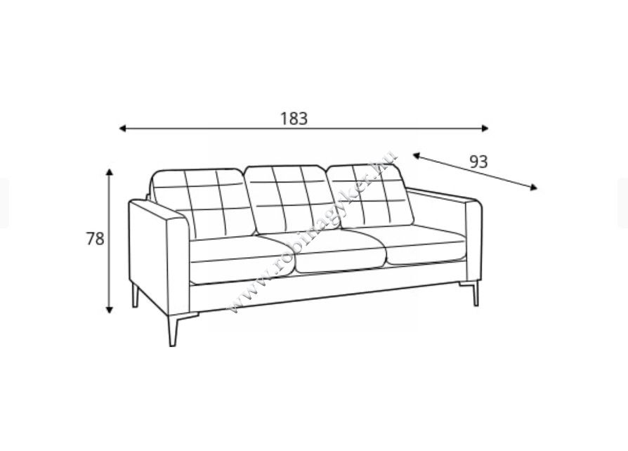 Kanapé 3 : 183x93x78 (szél./mélys./mag.) cm.