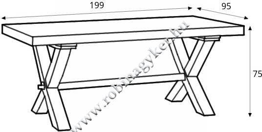 Komód 1D2S(55 x 118 x 42 [cm])+Komód 2D+Komód rátét 2D(98 x 204 x 42 [cm])+Asztal ST(199 x 75 x 95 [cm])+ 6x Szék T(44 x 105 x 39 [cm])(Szél./Mag./Mélys.)