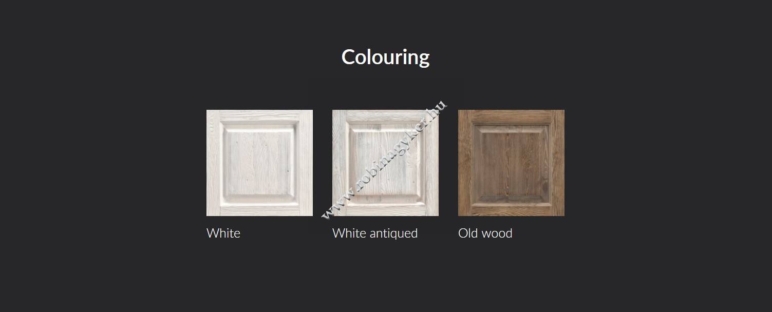 Ez a család nagyon sok fix méretű elemből áll és az elemekből válogatva lehet összeállítani a kívánt kombinációt.* Az előforduló fa elszíneződés,csomó,repedések és természetes hibák a design része és nem számít garanciális,reklamációs hibának !!! ***PROVANCE Stílus: Franciaország délvidéki otthonaira jellemző stílus. Színeiben a kopott pasztelles árnyalatok jelennek meg és az egy szín árnyalat használat.A bútorok egyszerűen könnyedek és kidolgozottak, a kopottas hatást nyújtják. A részletek nagy szerepet játszanak, amelyek magukban hordozzák a stílus érzést.**** VEVŐSZOLGÁLAT TEL :06-20-463-4097 Az árak tájékoztatóak, árváltozás jogát fenntartjuk. A szekrények összeszerelve érkeznek #