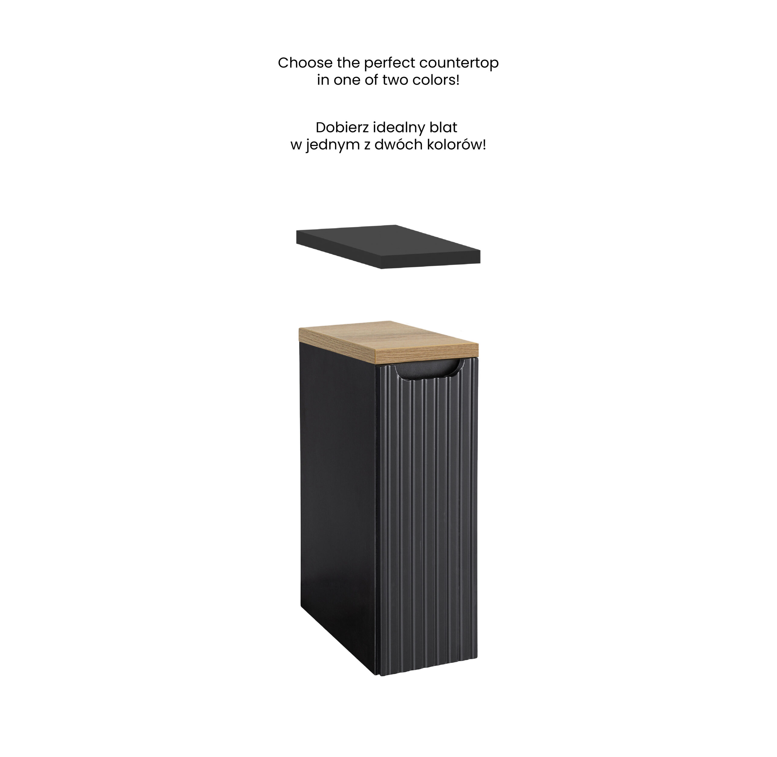 Letisztult, bordázott fronttal készült NOVA BLACK modern fürdőszoba bútor elem. Ideális választás, ha egységes, elegáns megjelenést és átgondolt tárolást szeretnél.