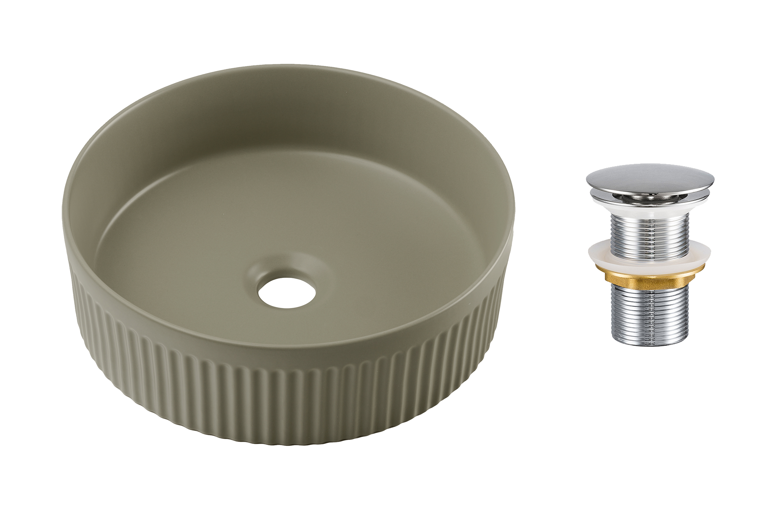 Pultra ültethető mosdó, mosdótál SET-BEYOND 2 OLIVER GREEN T201L-3-MP – tálmosdó 36×36 cm