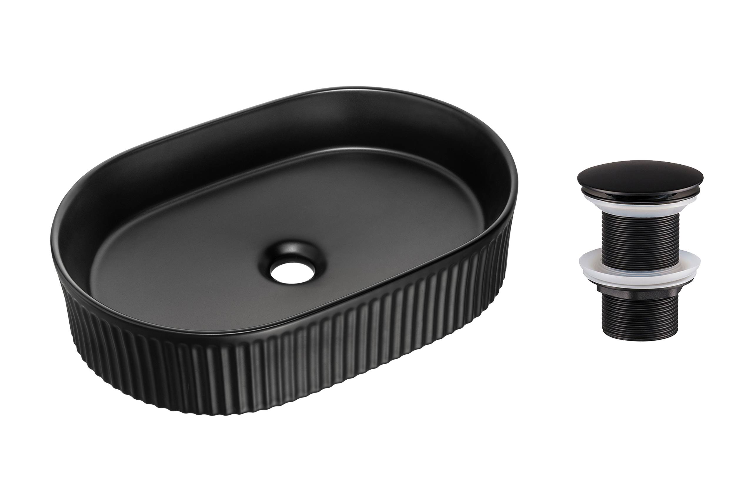 Pultra ültethető mosdó, mosdótál SET-BEYOND 5 BLACK T201MBG-3-MP – tálmosdó 48×32,5 cm