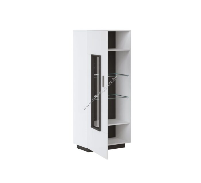 Stílusos és karakteres. A fehér fényes bútorok garantálják a fényvisszaverődést, ami tovább növeli a teret. Az eredetiséget finoman kiálló, megvilágított fekete keretek és fém fogantyúk garantálják. A nyitott polcok és a stílusos vitrinek érdekes kiegészítők bemutatására teremtettek helyet, amit energiatakarékos LED világítással lehet hangsúlyozni.