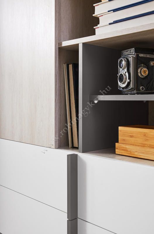 A REMO rendszer tökéletesen kiegészíti a modern gyerekszobát és egyedi hangulatot kölcsönöz neki. Fehér + wilton tölgy + antracit színben kapható. A bútorok minőségi laminált faforgács bútorlapból készülnek, amely ellenáll a mechanikai sérüléseknek.16mm vastag laminált faforgácslapból készült elemek esetén az ABS élzárás is a hosszú élettartamot biztosítja generációról generációra. Főbb jellemzők: a görgős teljesen kihúzható fióksínek és design fogantyúk.