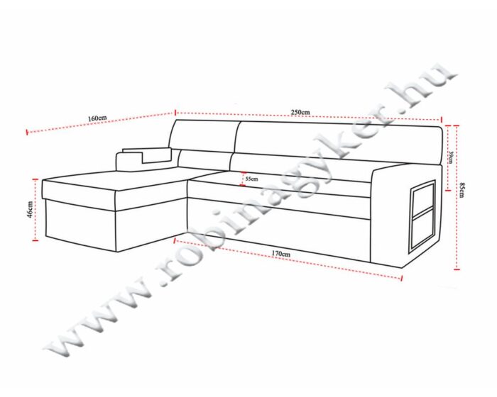 sarokgarnitura #Szélesség 250 cm # Magasság 85 cm # Mélység 160 cm#