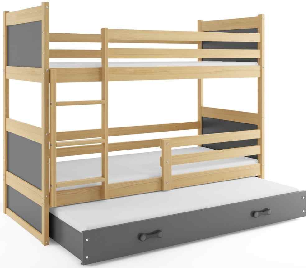 RICSI 3 (200X90) FENYŐ EMELETES ÁGY MATRACCAL,VENDÉGÁGGYAL
