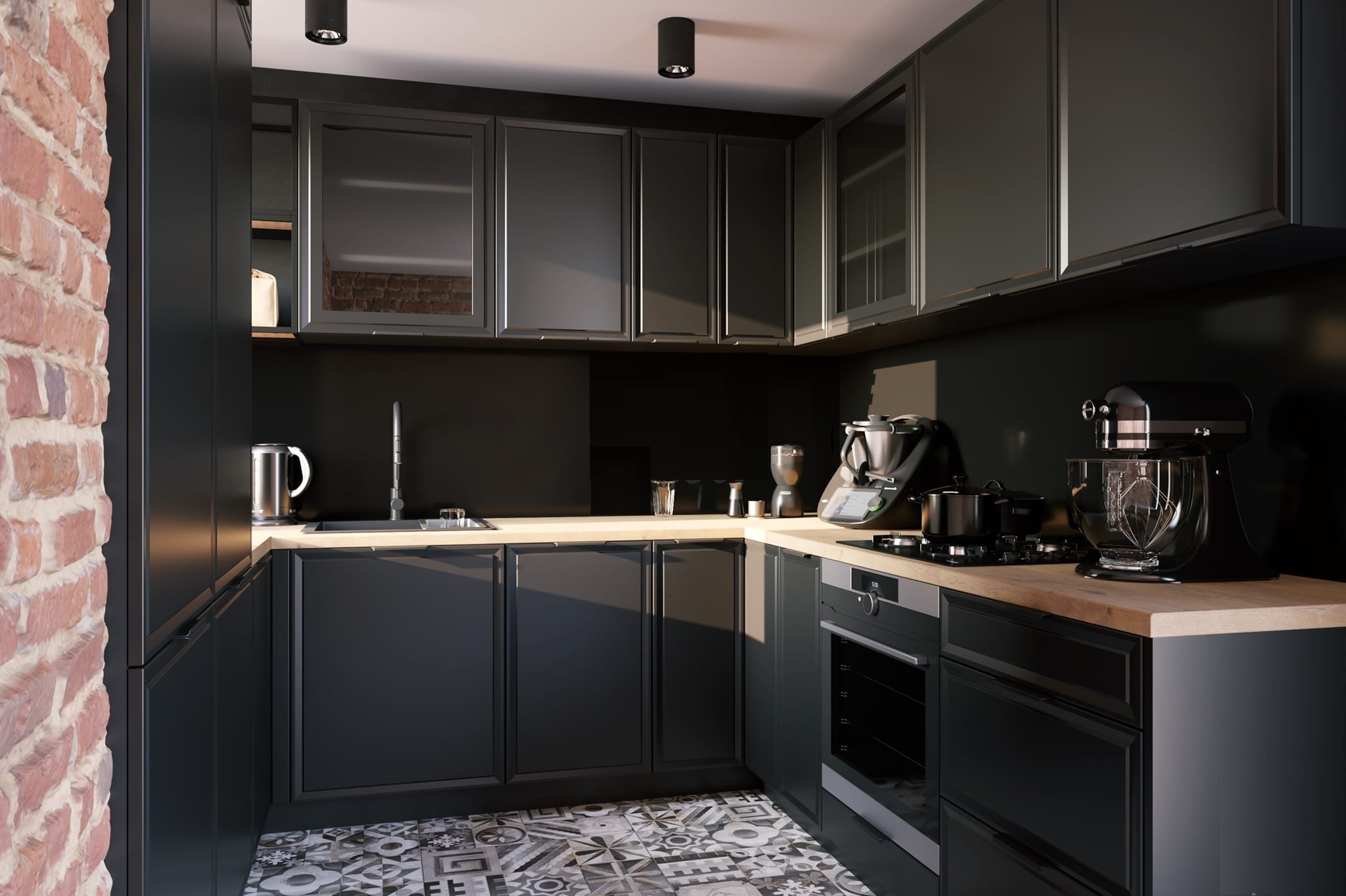 FEKETE MATT KORPUSSZAL_GRAFIT MATT Festett frontos konyhabútor