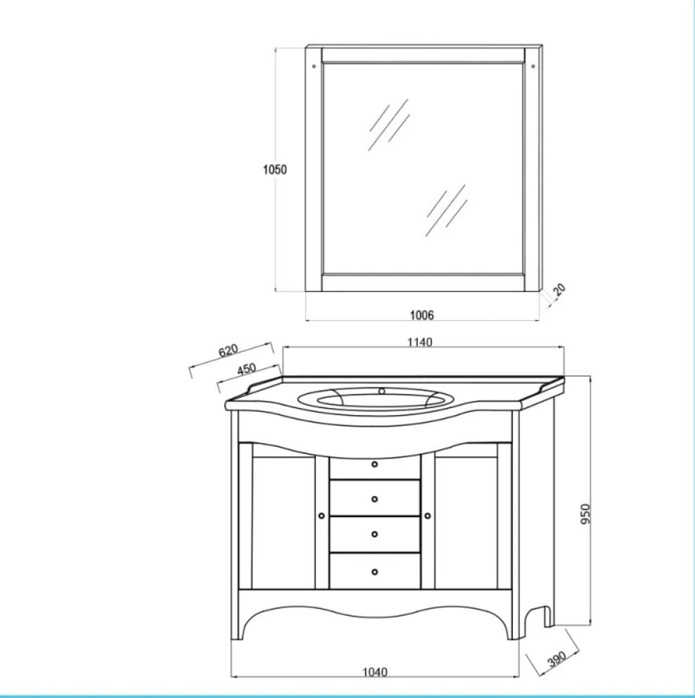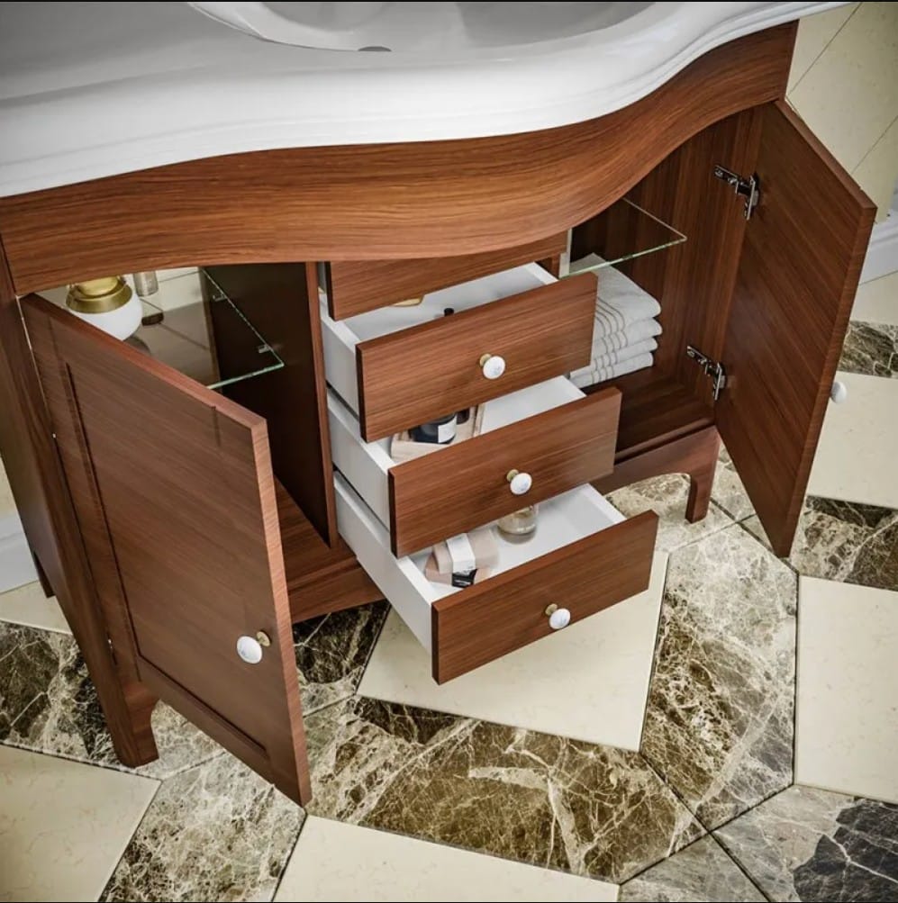 | ROMANTICA | 7081/F46 | Alsó szekrény + Mosdó | Romantica fürdöszobabútor 114 cm kerámia mosdóval (2 ajtós, 4 fiókos) – noce |