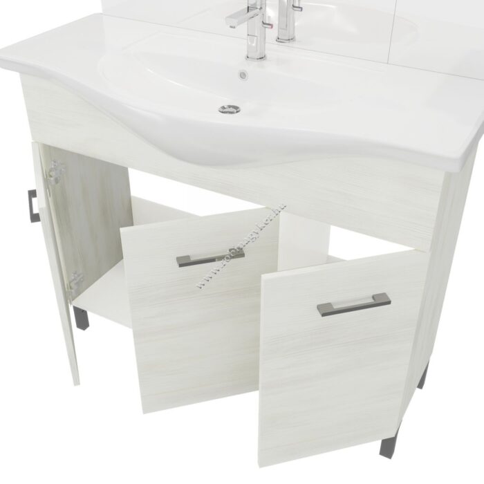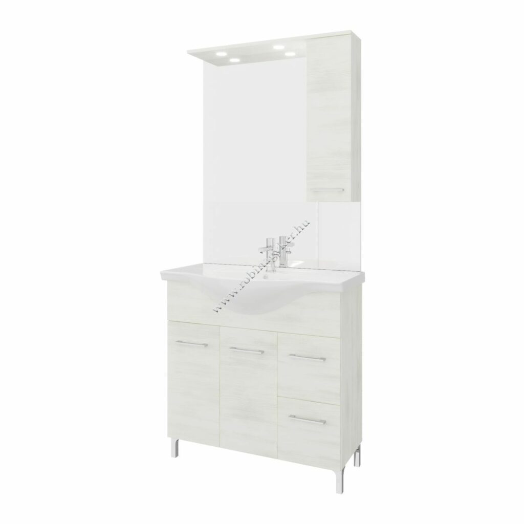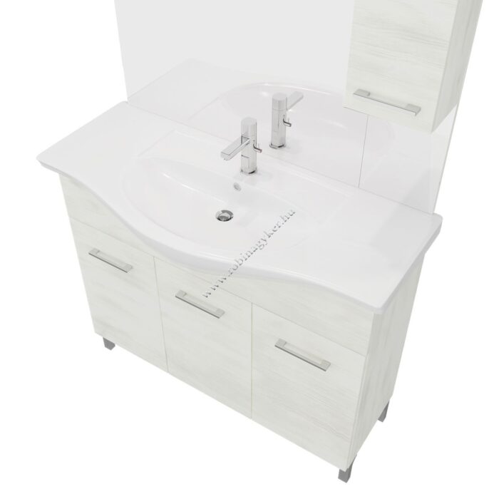 | 4×15+4x25D | RUBINO | Fürdőszobabútor 106 cm kerámia mosdóval (3 ajtós)+ oldalszekrényes tükör 99×102 cm 2 spot LED lámpa |