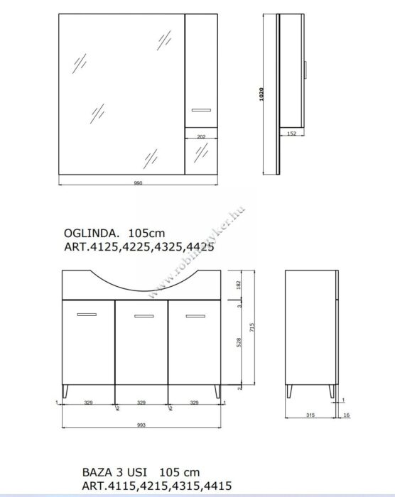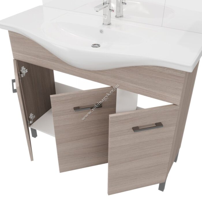| 4×15+4x25D | RUBINO | Fürdőszobabútor 106 cm kerámia mosdóval (3 ajtós)+ oldalszekrényes tükör 99×102 cm 2 spot LED lámpa |