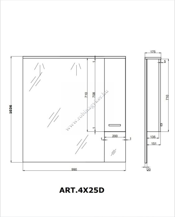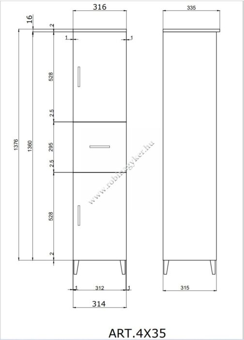 | 4x35D | RUBINO | Fürdőszobaszekrény (2 ajtós 1fiókos) Univerzális |