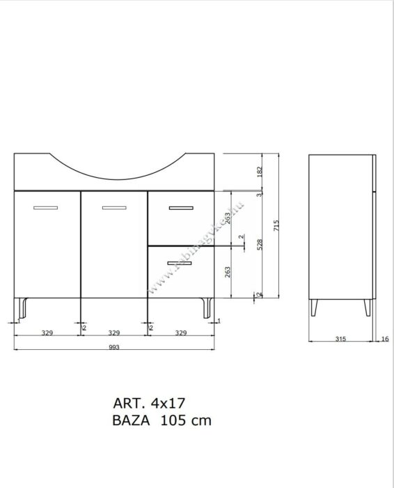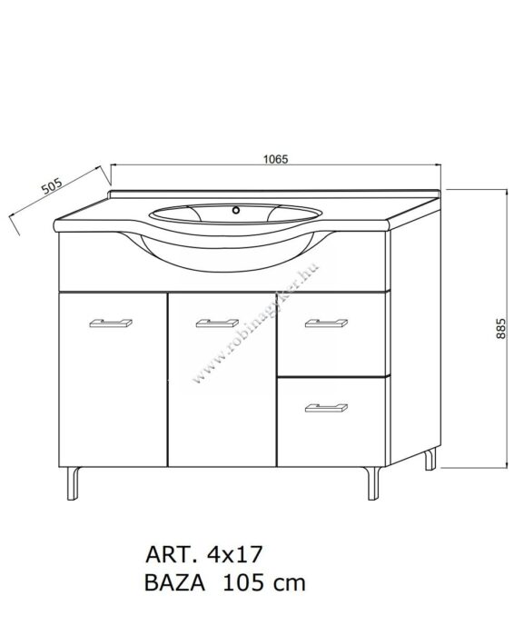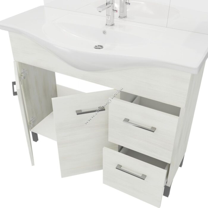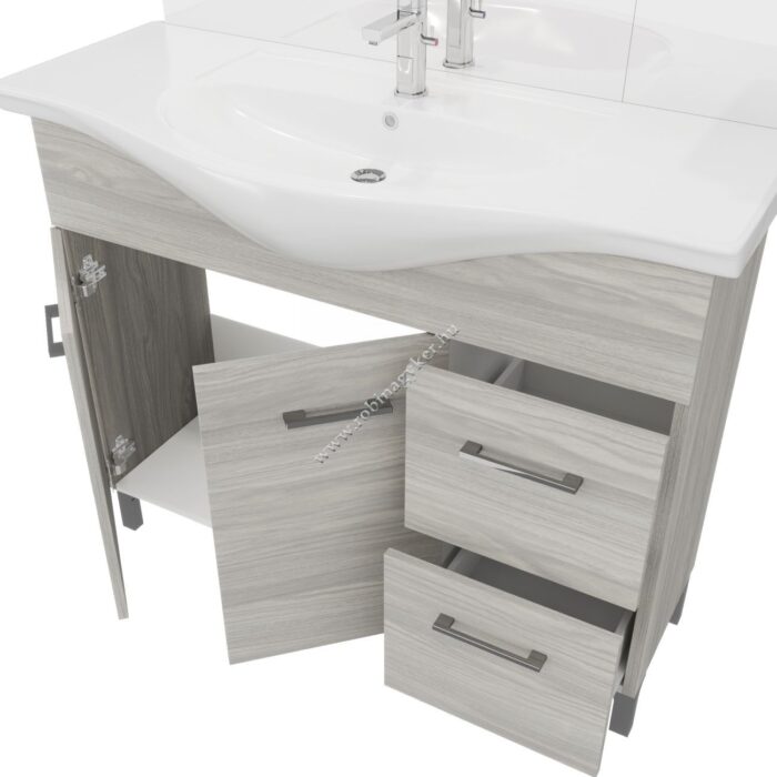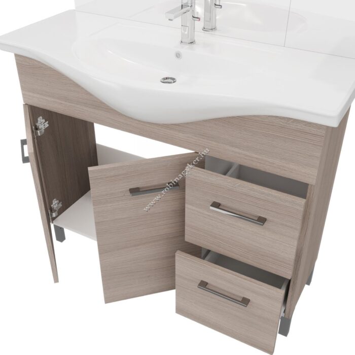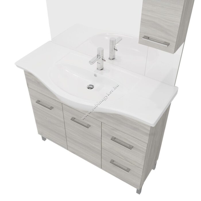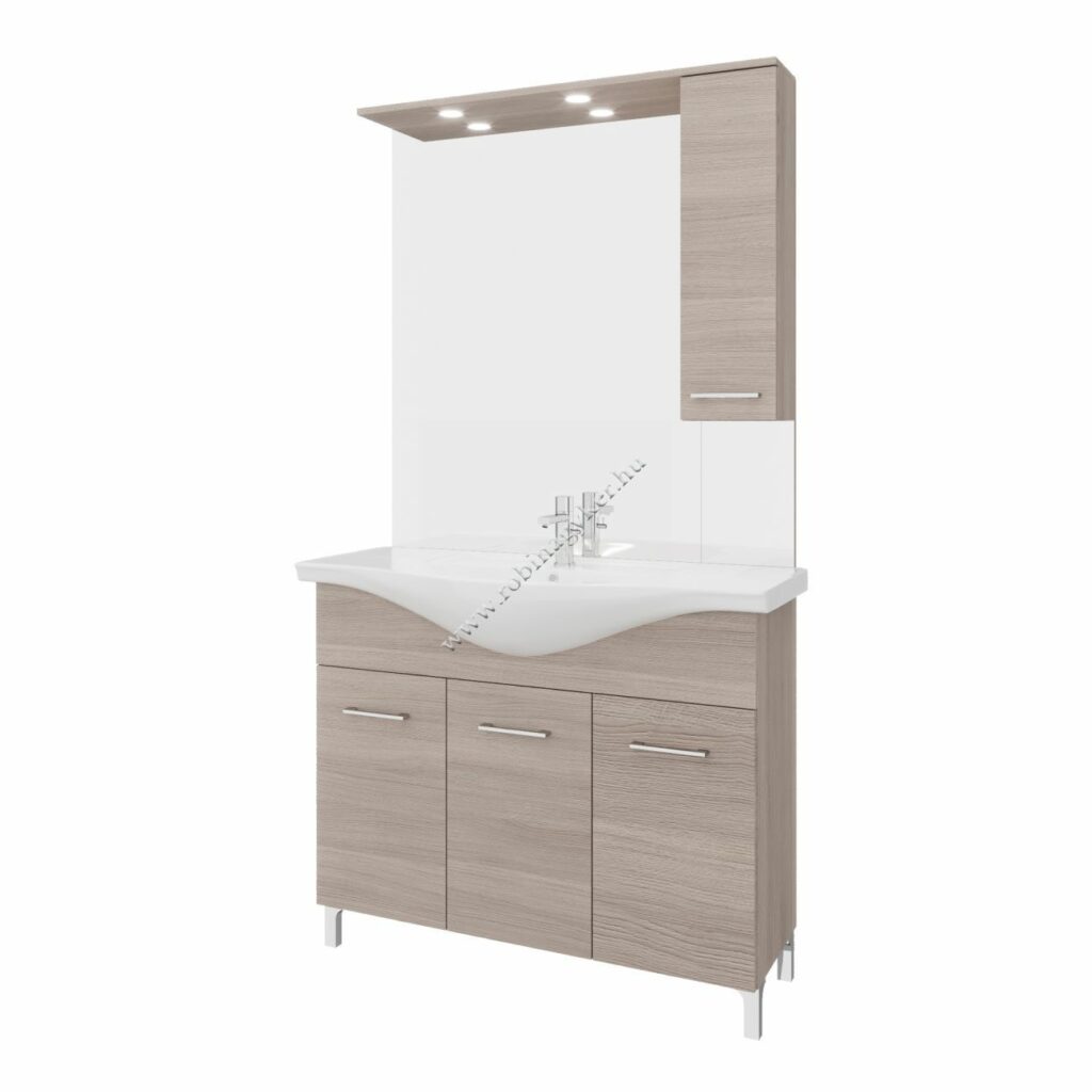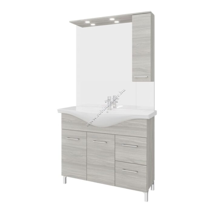 | 4×17+4x25D | RUBINO | Fürdőszobabútor 106 cm kerámia mosdóval (2 ajtós+2 fiokos)+ oldalszekrényes tükör 99×102 cm 2 spot LED lámpa |