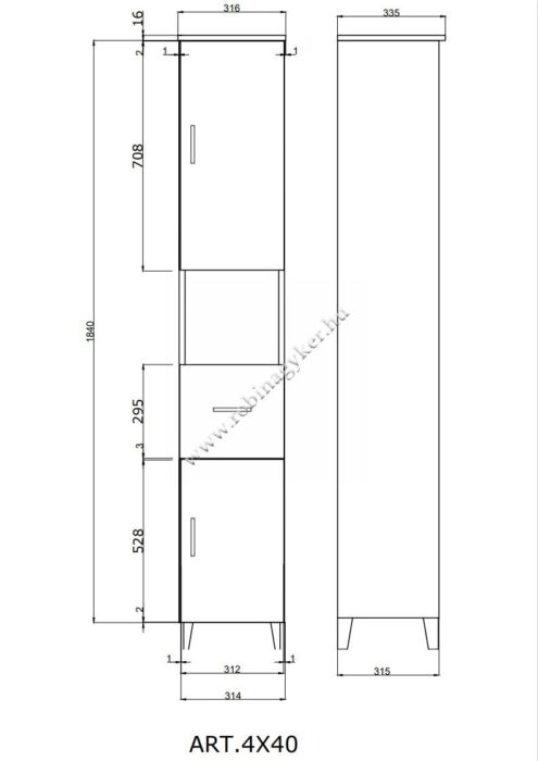 -a korpusz és front 16m vastag laminált faforgácslap 4mm-es ABS élzárással,