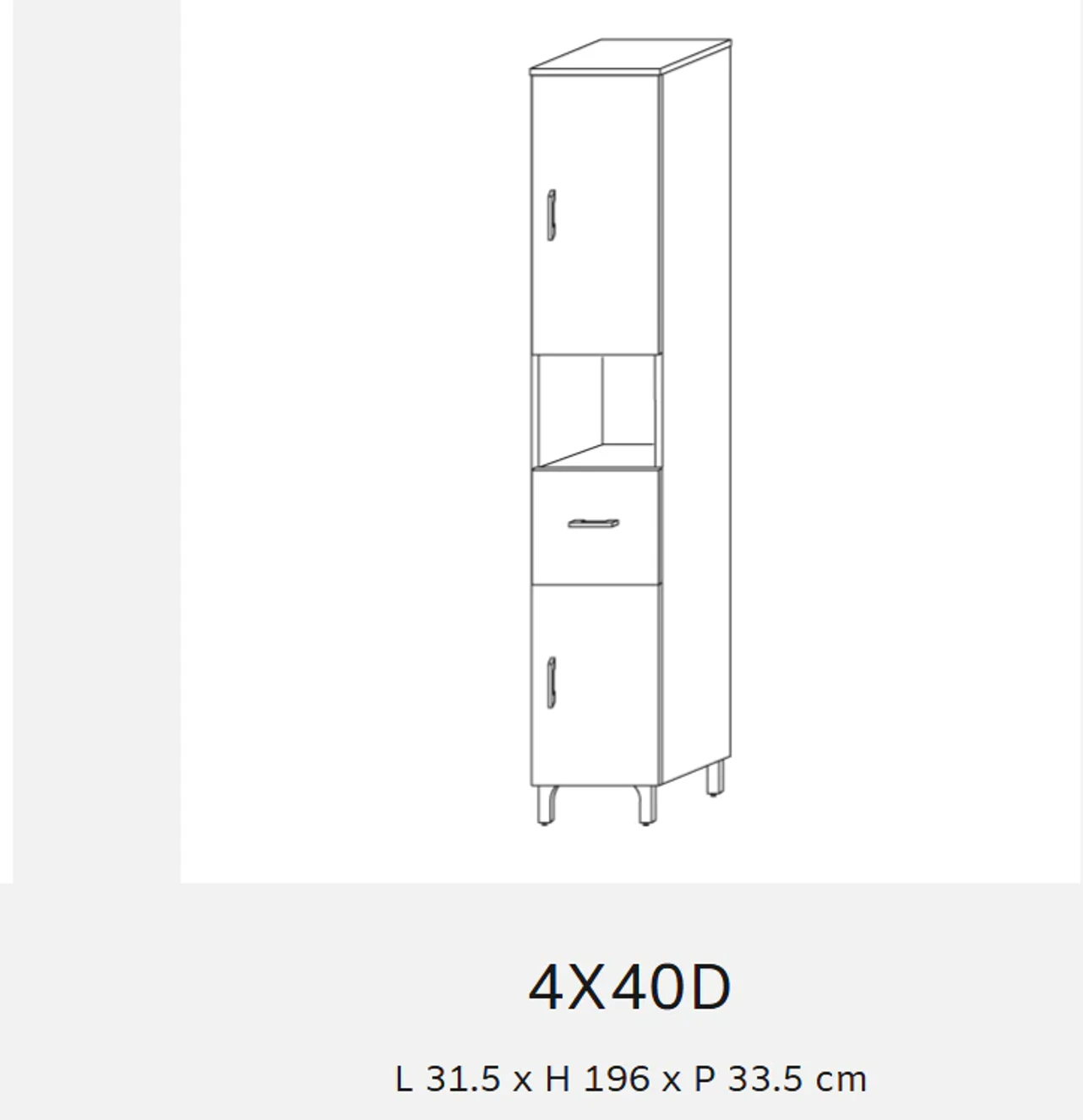 | RUBINO | 4540D | 34 cm | Rovere Ghiaccio | Álló szekrény | Rubino fürdőszobaszekrény (1 fiókos 2 ajtós, 1 nyitott tárolós) Univerzális |
