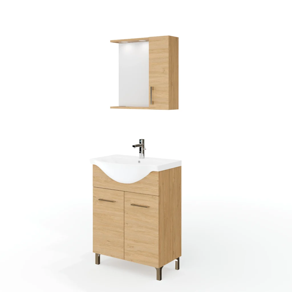 Akár egy kis alapterületű fürdőbe keresel kompakt mosdósszekrény megoldást, akár teljes fürdőszoba bútor szett mosdóval összeállításban gondolkodsz, a RUBINO NEW család praktikus és esztétikus választás lehet. A 55, 65, 85 és 105 cm-es méretopciók révén könnyebb megtalálni az ideális modellt, a famintás felületek pedig segítenek abban, hogy a fürdőszoba ne csak funkcionális, hanem otthonos is legyen.