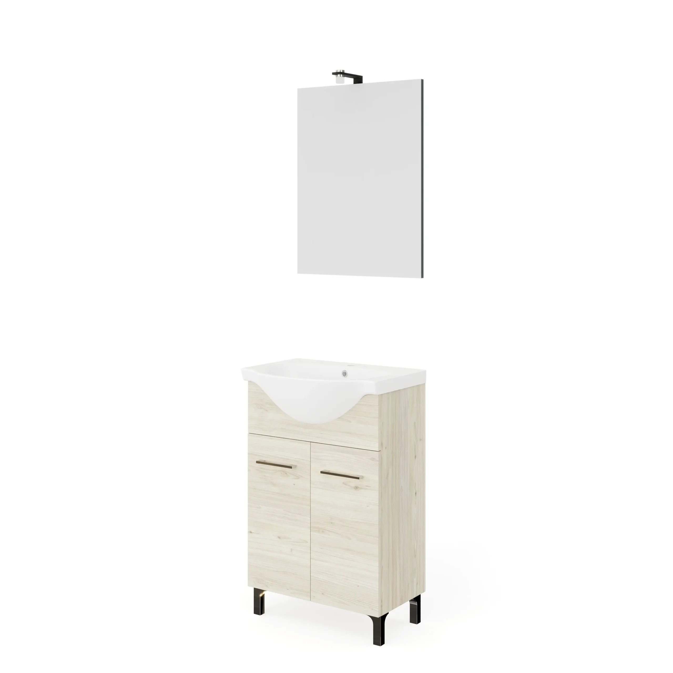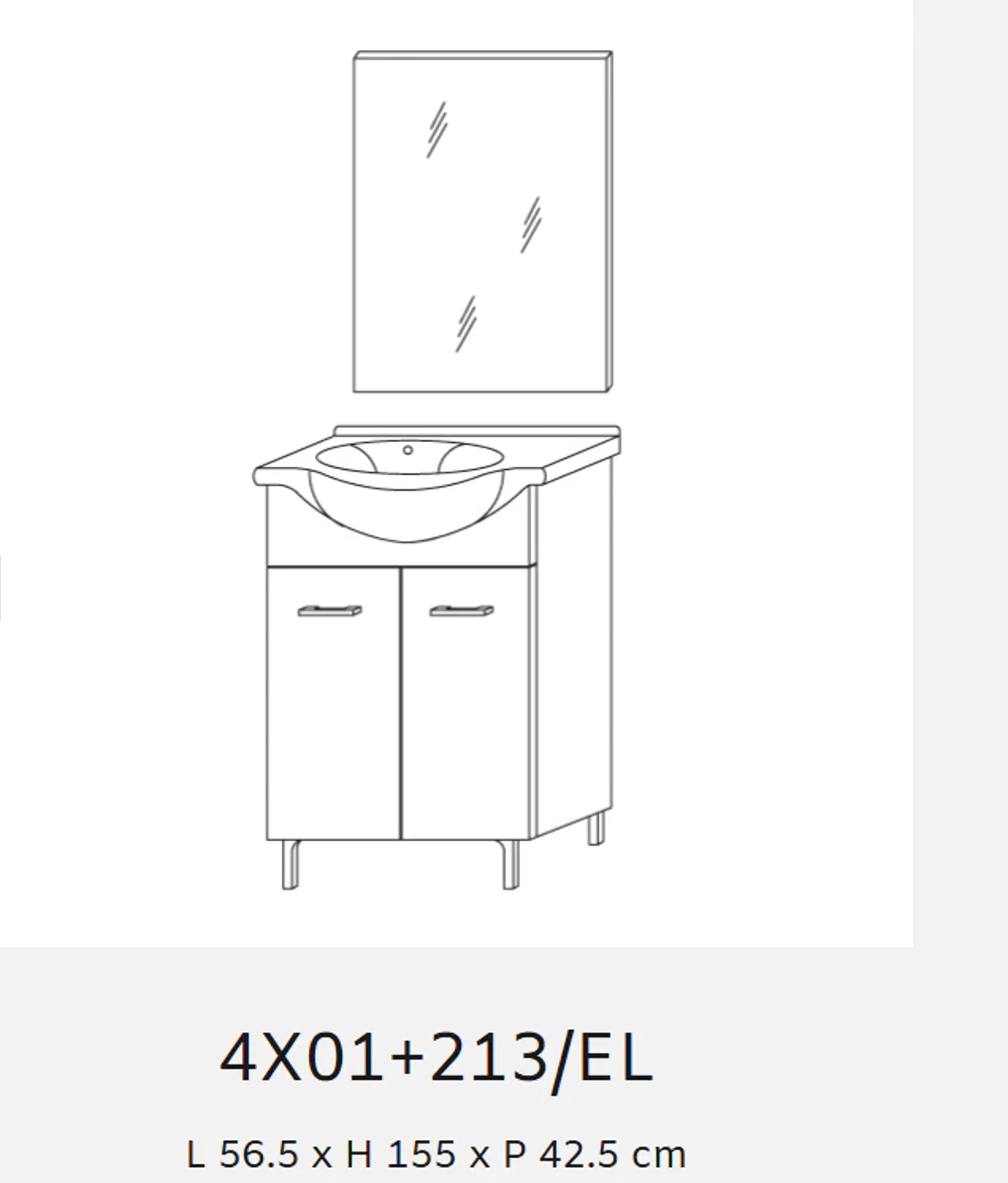 | RUBINO | 4501+213/EL | 55 cm | Rovere Ghiaccio | Alsó szekrény + Mosdó + Tükör | Rubino fürdőszobabútor 58 cm kerámia mosdóval (2 ajtós) + Laptükör 52×68 cm lámpa nélkül |