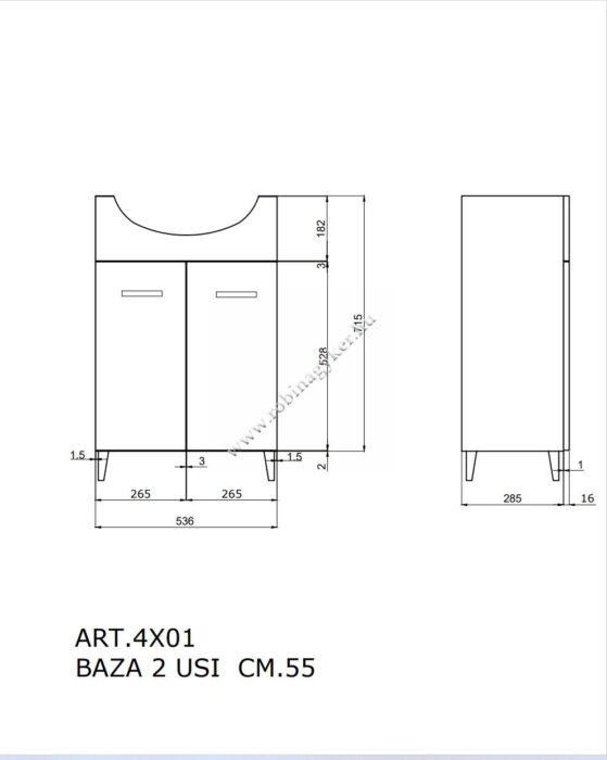| 4X01+213/EL | RUBINO | Fürdőszobabútor 58 cm kerámia mosdóval (2 ajtós) + Laptükör 52×68 cm lámpa nélkül ! |