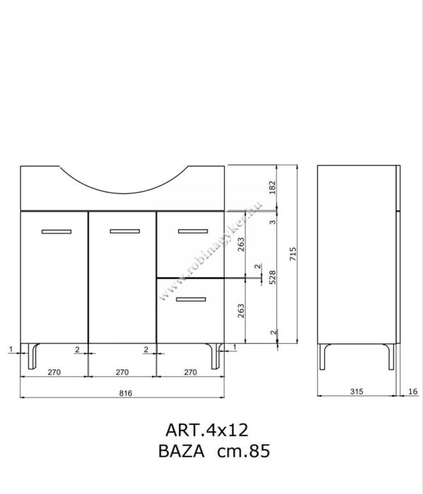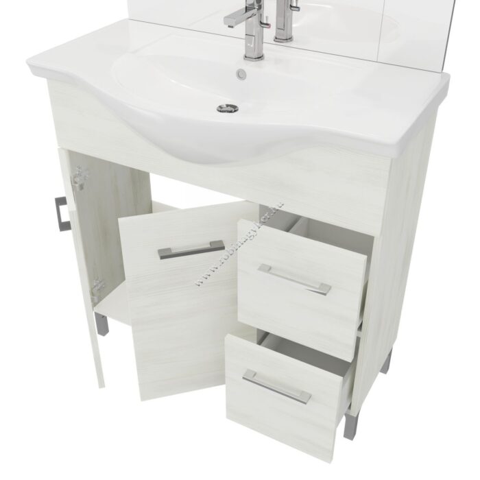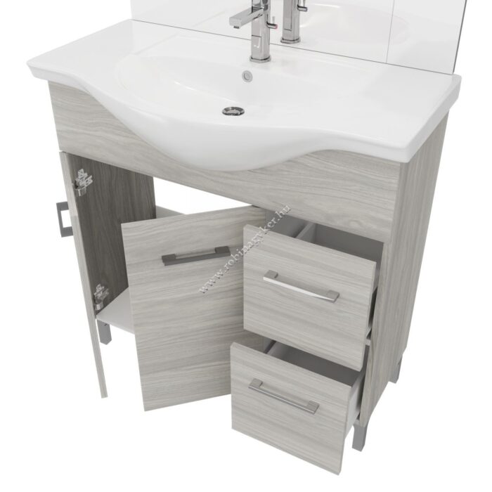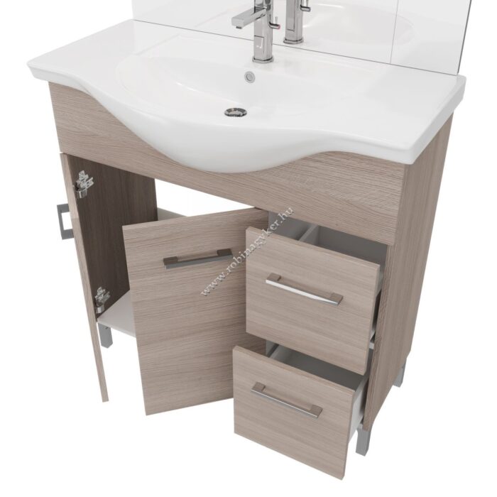 | 4×12+4x24D | RUBINO | Fürdőszobabútor 86 cm kerámia mosdóval (2 ajtós+2 fiokos)+ oldalszekrényes tükör 81×102 cm 2 spot LED lámpa |