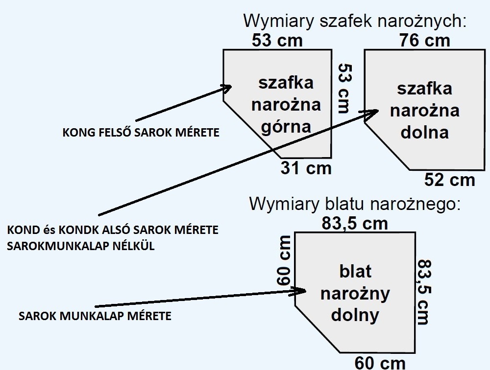 A sarok elemre szükséges munkalap szélessége – beépítési helyigénye / mérete