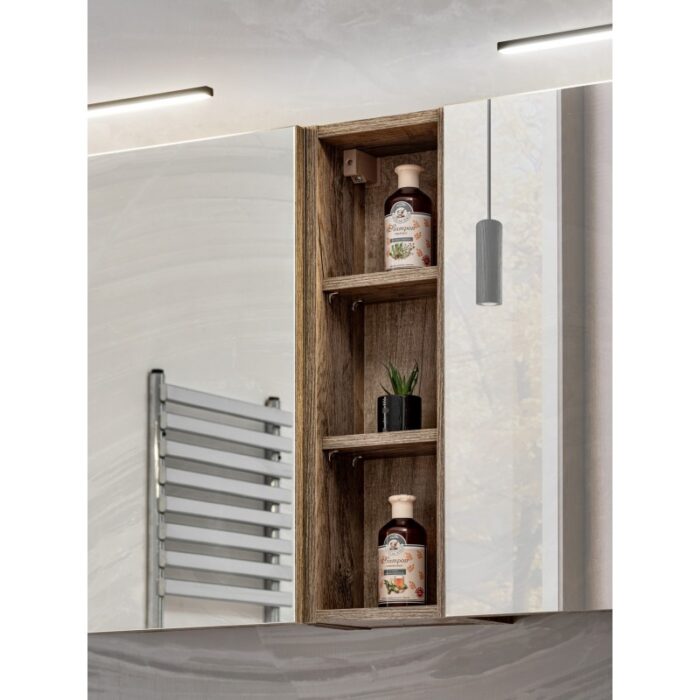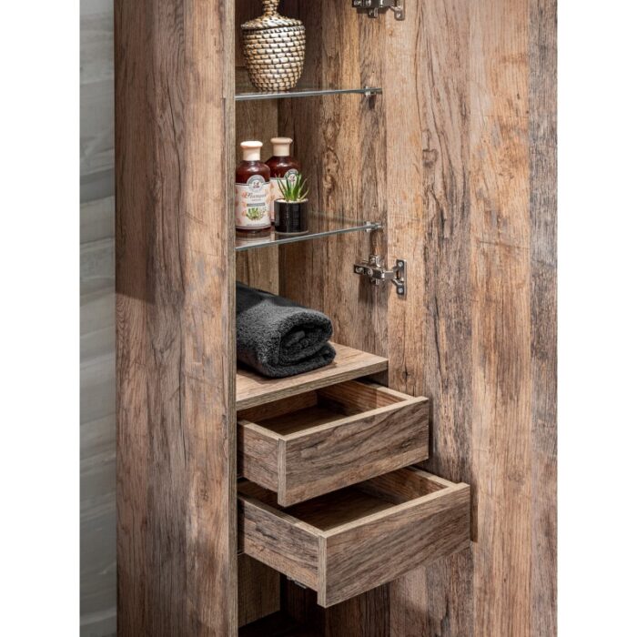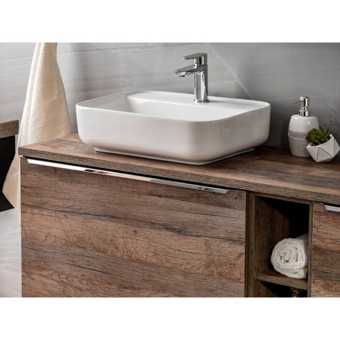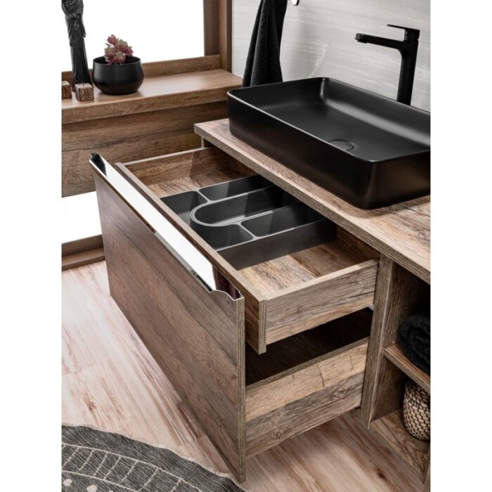 A Santa Fe OAK modern stílusban tervezett blokkok, amelyeknek köszönhetően szinte bármilyen elrendezésbe könnyen illeszkednek. Az előlapok és a vintage tölgy színű bútor testek króm fogantyúkkal kombinálva könnyed eleganciát kölcsönöz az egésznek. A kollekcióban található tükrös szekrények optikailag megnövelik a fürdőszobát és további tárolóhelyet biztosítanak. A Santa Fe OAK kollekcióból származó fürdőszoba bútorok kényelmes használatot és funkcionalitást jelentenek. A kollekcióban mosdószekrények, magas szekrény, tükörszekrények, alsó és felső polcok találhatók. A szekrények széles választéka ezt a kollekciót az egyik legmodulárisabbá teszi kínálatunkban, aminek köszönhetően szinte minden méretű fürdőszobába illeszkedik. Ügyfeleink elvárásainak kielégítése érdekében fiókrendszerező egészíti ki ezt a kollekciót.