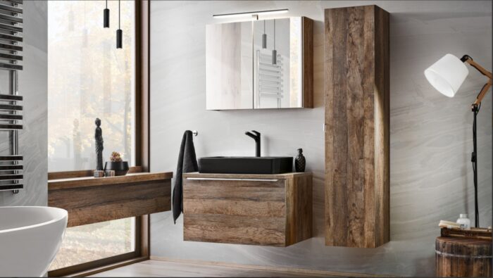 A Santa Fe OAK modern stílusban tervezett blokkok, amelyeknek köszönhetően szinte bármilyen elrendezésbe könnyen illeszkednek. Az előlapok és a vintage tölgy színű bútor testek króm fogantyúkkal kombinálva könnyed eleganciát kölcsönöz az egésznek. A kollekcióban található tükrös szekrények optikailag megnövelik a fürdőszobát és további tárolóhelyet biztosítanak. A Santa Fe OAK kollekcióból származó fürdőszoba bútorok kényelmes használatot és funkcionalitást jelentenek. A kollekcióban mosdószekrények, magas szekrény, tükörszekrények, alsó és felső polcok találhatók. A szekrények széles választéka ezt a kollekciót az egyik legmodulárisabbá teszi kínálatunkban, aminek köszönhetően szinte minden méretű fürdőszobába illeszkedik. Ügyfeleink elvárásainak kielégítése érdekében fiókrendszerező egészíti ki ezt a kollekciót.