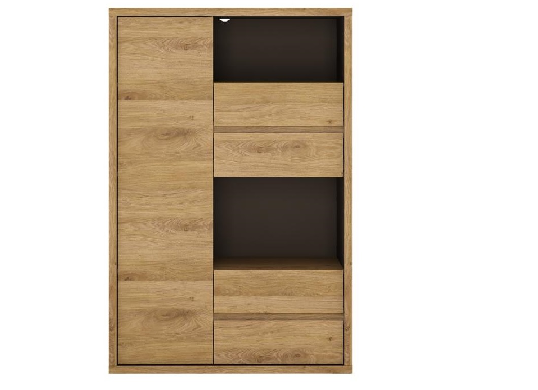 -A nyitott elemrészek szürke belső színe kihangsúlyozza a fa természetes csomoit, ezáltal elősegíti a természetes érzést.