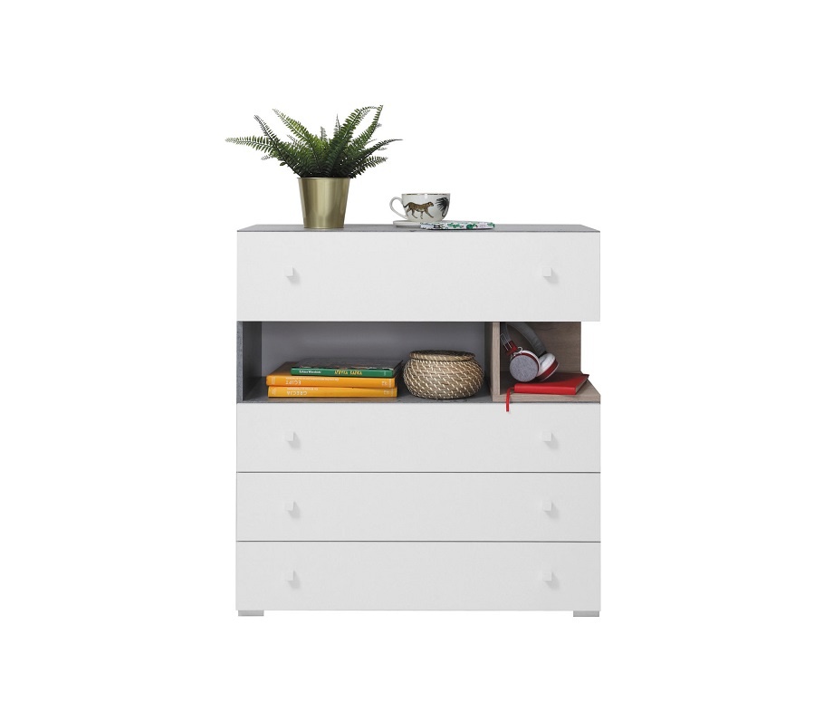 Az összeállítás elemei: SI11 *4Fiókos komód 85/90/40cm (szél./mag./mélys.)