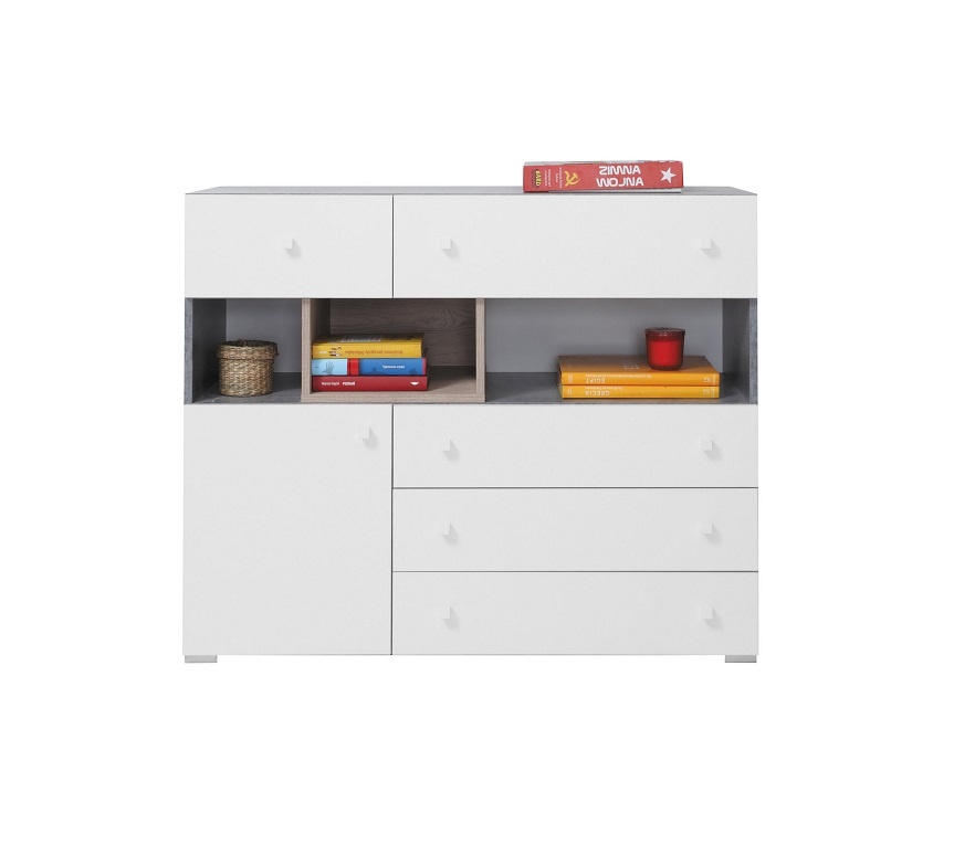 Az összeállítás elemei: SI12 *4Fiókos-1Ajtós komód 110/90/40cm (szél./mag./mélys.)