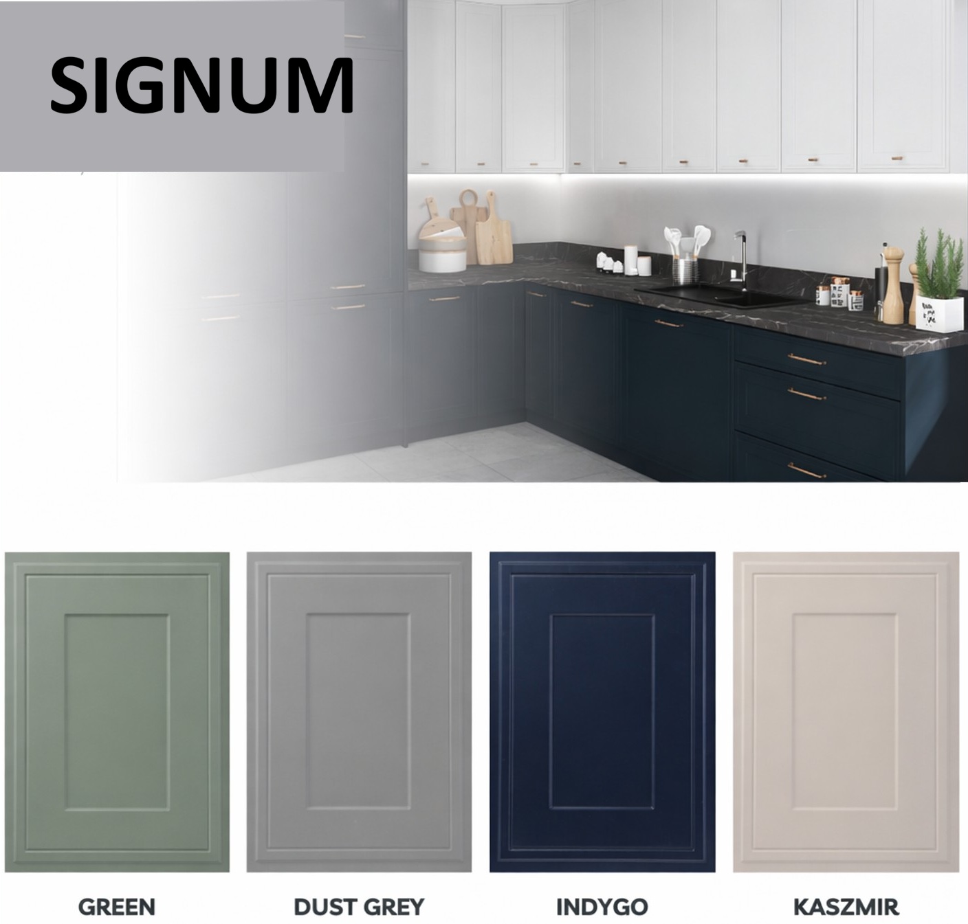 Öt SIGNUM frontszín – CASHMERE,DUST GREY, GREEN,INDIGO,BIALY MATT