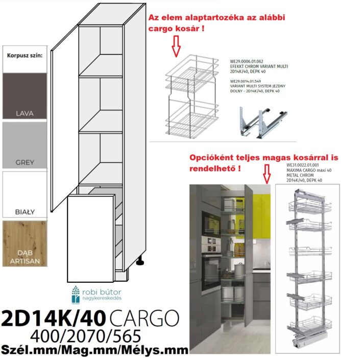 SILVER MATT 2-ajtós CARGO KOSARAS szekrény 40 cm