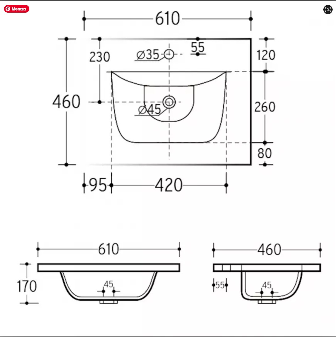 SKY 60-8099 60-as Kerámia Mosdó:Szélesség: 61 cm Magasság: 17 cm Mélység: 46 cm